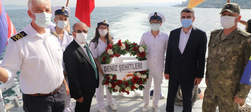 Başkan Özacar’ın konuşmasının ardından protokol üyeleri tekne ile denize açılarak Ulu Önder Mustafa Kemal Atatürk ve Şehit denizciler anısına boğaza çelenk bıraktılar.