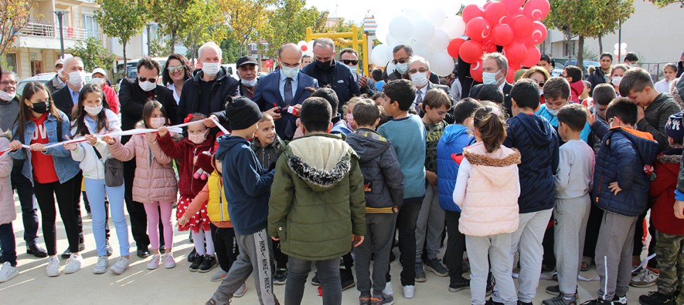 Başkan Özacar’ın konuşmasının ardından çocuklarla beraber açılış kurdelesi kesildi. Ardından yeni yapılan park gezildi.