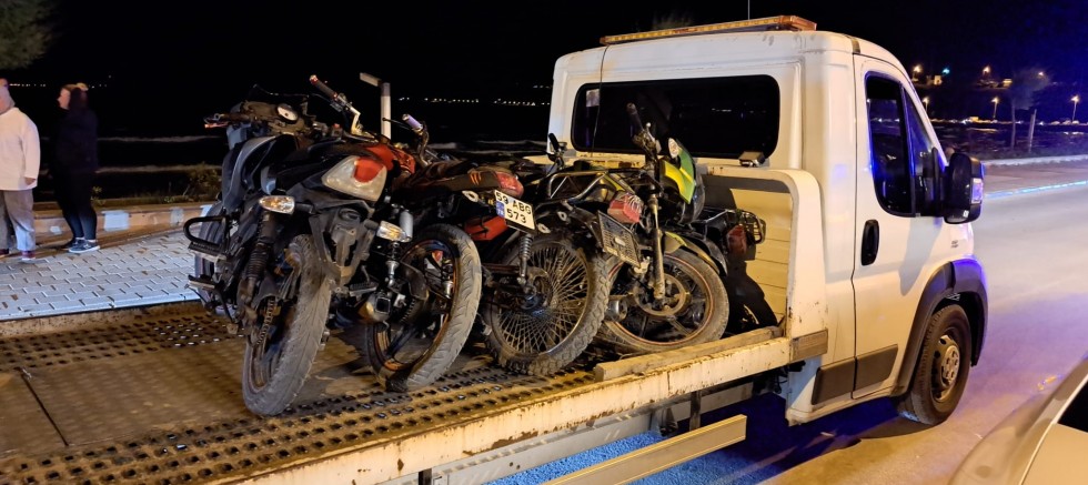 Bu denetimler sonunda 12 adet motosiklet ve 1 adet otomobil trafikten men edilerek çekici nezaretinde otoparka çekildi. Denetimlerde 1 motosiklet sürücüsüne abartı egzoz takmak ve kask kullanmamaktan 1.387 TL, diğer bir motosikletin tescil plakasına tehlikeli şerit değiştirmek, kask kullanmamak, uyarılara riayet etmemek ve abartı egsozlu araç kullanmaktan 3 bin 289 TL, 1 sürücüye belgesiz olarak araç kullanmak ve abartı egzoz takmak maddesinden 9 bin 141 TL trafik cezası kesilirken, bir araç sahibine sürücü belgesiz araç kullandırmak ve muayene yaptırmamaktan 10 bin 169 TL trafik cezası kesildi. Toplamda 2 sürücü, 1 araç sahibi ve 1 tescil plakasına toplamda 23 bin 986 TL trafik para cezası uygulanırken, 12 adet motosiklet ve 1 otomobil de trafikten men edilerek çekici ile otoparka çektirildi.
