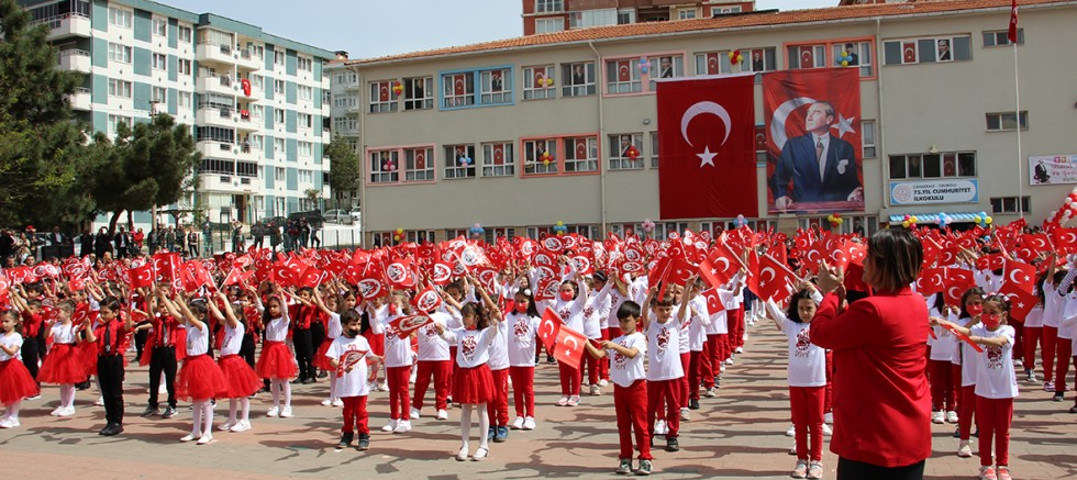 İlçemizdeki kutlamaların ikinci programı 75. Yıl Cumhuriyet İlkokulu bahçesinde devam etti. Buradaki tören, saygı duruşu ve İstiklal Marşı’nın okunması ile başladı. Ardından 75. Yıl Cumhuriyet İlkokulu Müdürü Bilal Duman tarafından günün anlam ve önemini belirten konuşma gerçekleştirdi. Okul Müdürü Bilal Duman’ın konuşmasının ardından öğrencilerin öğretmenleri ile birlikte hazırladığı gösteriler yapıldı. Törende, Neyire Erden Anaokulu öğrencileri tarafından bir gösteri yapılırken, öğretmenleri tarafından da halk oyunları gösterisi yapıldı. Öğrencilerin gösterileri törene katılanlar tarafından coşkuyla izlendi.