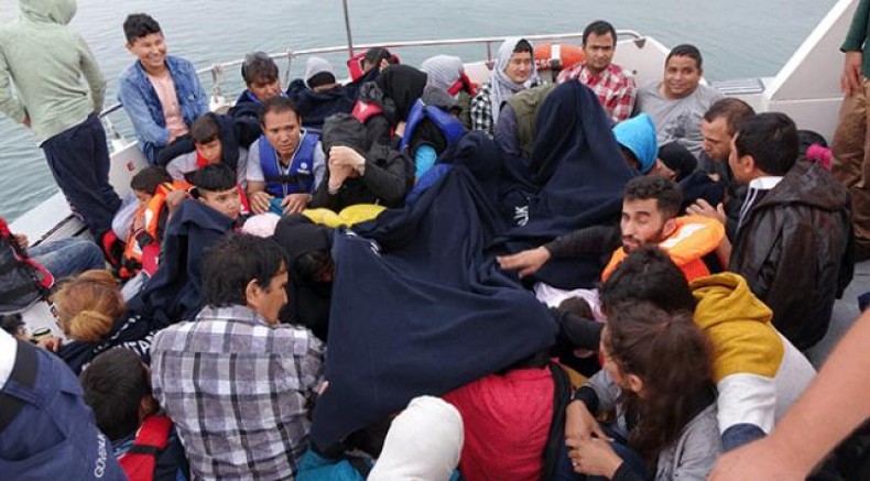 Sahil güvenlik botuna alınan Afganistan, İran ve Pakistan uyruklu 47 düzensiz göçmen kıyıya getirildi.