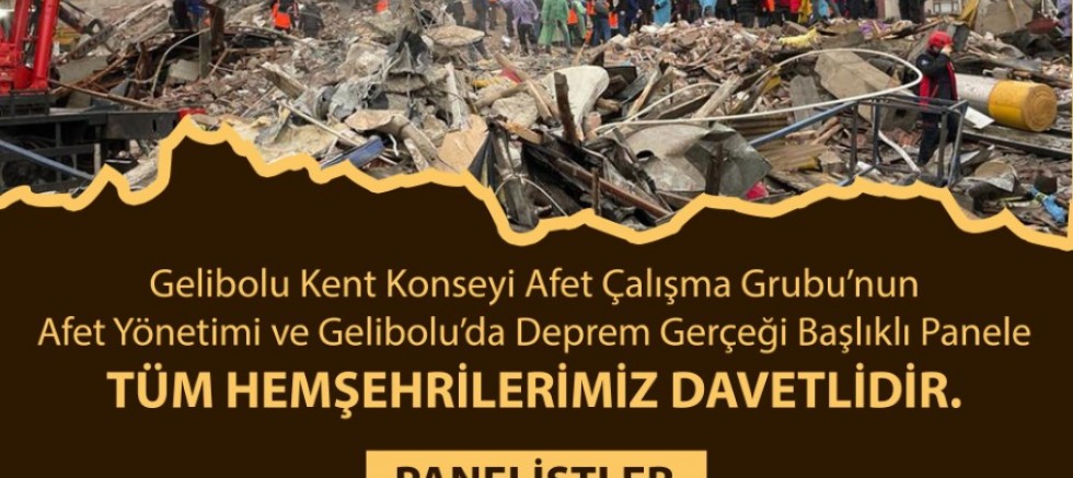 Gelibolu Kent Konseyi Afet Çalışma Grubu tarafından “Afet Yönetimi ve Gelibolu’da Deprem Gerçeği” konulu panel gerçekleştirilecek.