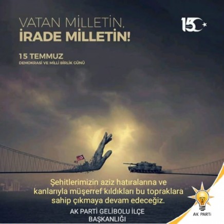 AK Parti İlçe Başkanı Hakkı Uysal, 15 Temmuz Demokrasi ve Milli Birlik Günü münasebetiyle bir mesaj yayınladı.
