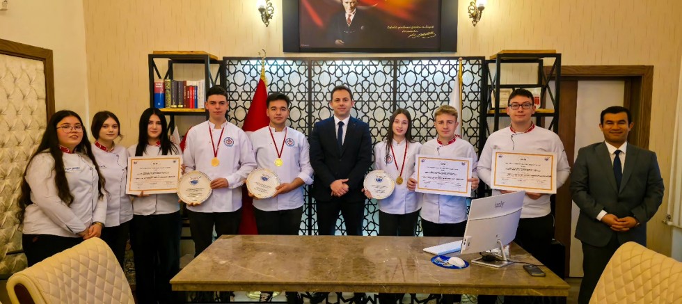 İstanbul’da 17–20 Aralık 2025 tarihleri arasında düzenlenen 22. Uluslararası İstanbul Mutfak Günleri Festivali kapsamında gerçekleştirilen JP5 Liseler Arası Modern Türk Mutfağı Ekip Yarışması’nda Altın Madalya kazanan Gelibolu Atatürk Mesleki ve Teknik Anadolu Lisesi ekibi, İlçe Millî Eğitim Müdürü Kadir Aydın ve Kaymakam Cihat Koç’u ziyaret etti.