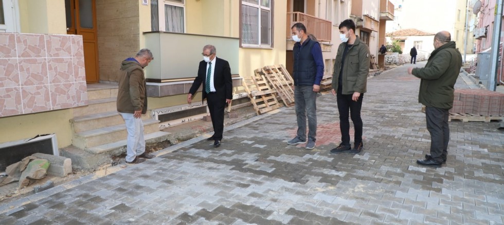 Fen İşleri Müdürlüğü ekipleri tarafından üstyapı çalışmaları kapsamında devam eden kilitli parke taşı döşeme çalışmalarını inceleyen Başkan Özacar, incelemenin ardından çalışan personele kolaylıklar diledi.