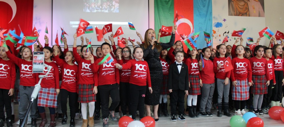 Sahneye büyük bir coşkuyla davet edilen Turan Manafzade, şarkılarına başlamadan önce yaptığı duygusal konuşmada şu sözlere yer verdi: “Dünyanın farklı yerlerinde konserler verdiğim için ancak şimdi buraya gelebildim. Davetiniz beni çok mutlu etti. Burada olmaktan onur duyuyorum. Öğrencilerimize 100. Yıl Marşı’nı öğreten öğretmenlerimizin ellerinden öpüyorum. Cumhuriyetimize armağan ettiğim 100. Yıl Marşı’nı sunarken en büyük dileğim Cumhuriyetimizin ilelebet payidar olmasıdır. Ne mutlu Türk’üm diyene!”