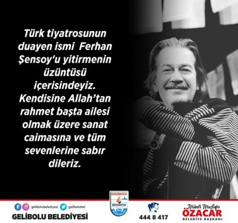 Bir süredir tedavi gördüğü hastanede hayatını kaybeden usta sanatçı Ferhan Şensoy'un ardından ilçemiz Belediye Başkanı Mustafa Özacar bir mesaj yayımladı.