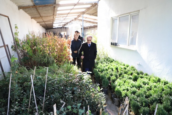 Belediye Başkanı Mustafa Özacar, Aleaddin Mahallesi’nde eski mezbaha çevresinde oluşturulan sera alanında, Park ve Bahçeler Müdürü Müge Özkan Göksel ile incelemede bulundu.