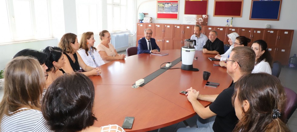 Fen Lisesi Müdürü Ebru Çelik ve öğretmenler ile Gazi Süleyman Paşa İlkokulu Müdürü Cem Kayalı ve öğretmenler ile bir araya gelen Belediye Başkanı Mustafa Özacar, yeni eğitim öğretim yılının başlaması nedeniyle tüm öğretmen ve öğrencilere başarılar diledi.