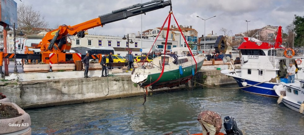 İlçemizde, yağmur suyu ile dolması sonucu batan tekne denizden çıkarıldı. Sahibinin yurt dışında olması nedeniyle yapılan görüşmeler sonunda Liman Başkanlığı nezaretinde kurtarma çalışması yapıldı.