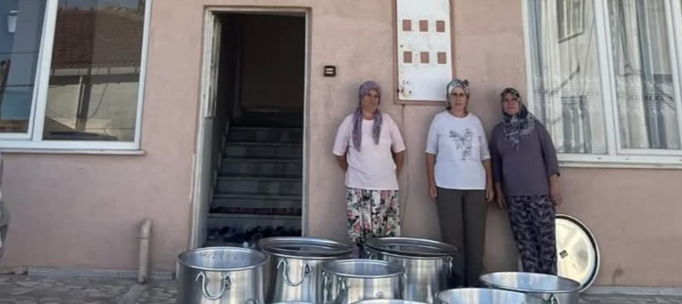 Gelibolu’nun köylerinden Bayırköy’de kadınlar, imece usulüyle köy düğünlerinde ve etkinliklerde kullanılmak üzere yemek kazanı alarak muhtarlığa teslim etti.