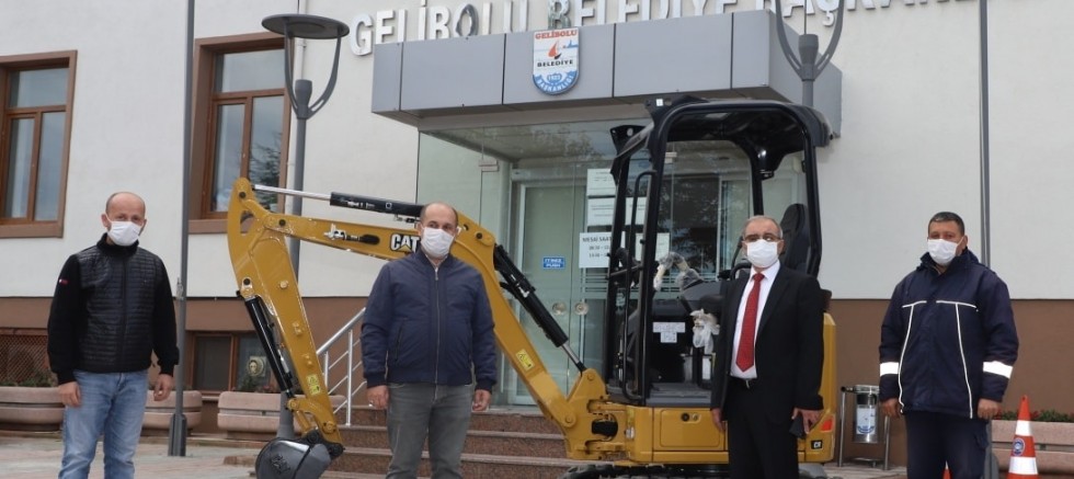 Gelibolu Kent Hizmetleri A.Ş. tarafından satın alınarak Belediyeye hibe edilen, dar alanlarda rahat çalışma ortamı sağlayacak olan mini ekskavatör iş makinesi Belediye Başkanı Mustafa Özacar tarafından teslim alındı.