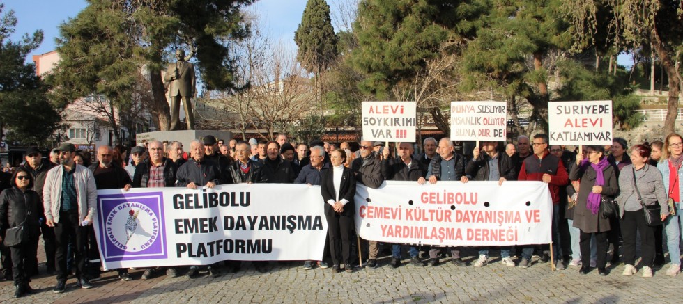 Gelibolu Cemevi Kültür ve Dayanışma Derneği ve Gelibolu Emek Dayanışma Platformu tarafından, dün İskele Meydanında Suriye’de öldürülen Aleviler nedeniyle basın açıklaması düzenlendi.