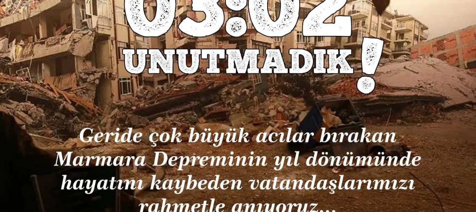 Başkan Özacar, yayımladığı anma mesajında; “Geride çok büyük acılar bırakan Marmara depreminin yıldönümünde hayatını kaybeden vatandaşlarımızı rahmetle anıyorum. Bu acılar bir daha yaşanmasın!” ifadelerine yer verdi.