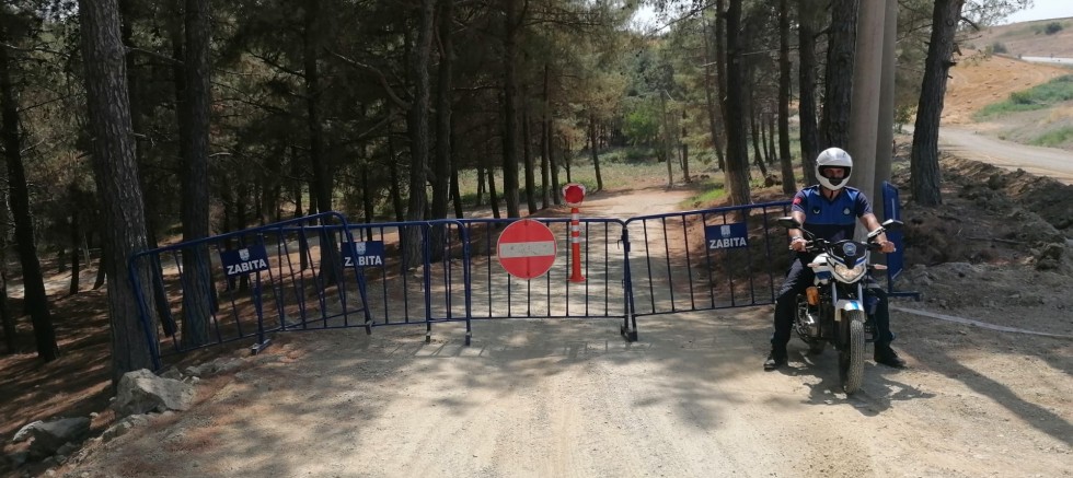 Alınan kararlara göre, ilçemizdeki M. Nuri Erer Belediye Çamlığına giriş ve buralarda piknik yapmak 30 Ağustos’a kadar yasaklandı. Bu kararla birlikte Belediye Zabıta Müdürlüğü ekipleri bu alanlara girişleri bariyer ve şeritlerle kapatarak, kontrol altına aldı.