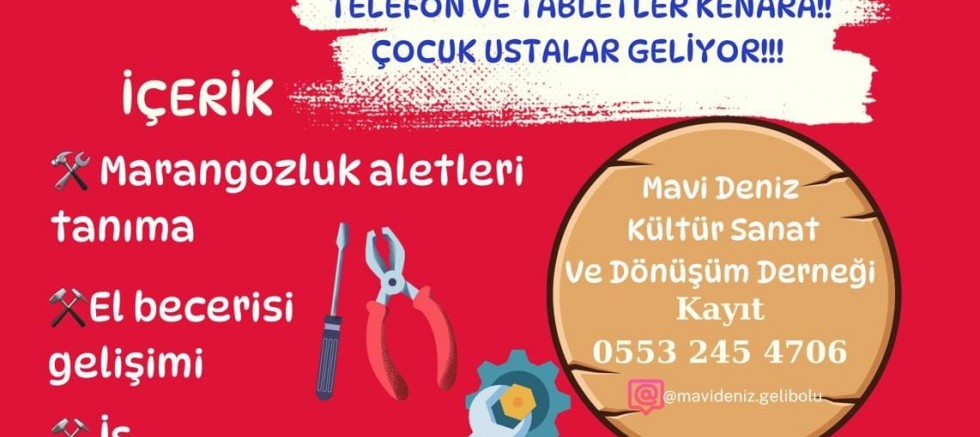 Mavi Deniz Kültür Sanat ve Dönüşüm Derneği, yaz tatili döneminde çocuklar için marangozluk atölyesi düzenliyor.