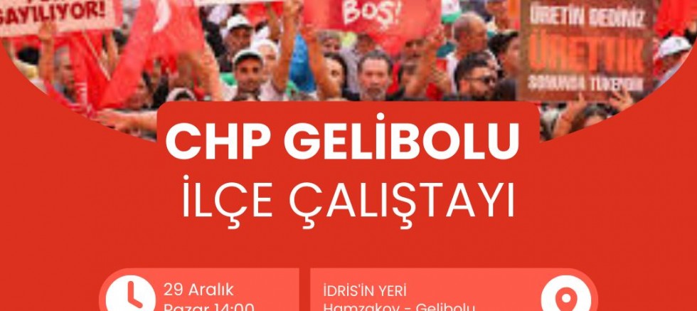 Cumhuriyet Halk Partisi (CHP) Gelibolu İlçe Başkanlığı tarafından düzenlenecek çalıştay, 29 Aralık Pazar günü saat 14:00’da İdrisin Yeri / Hamzakoy’da gerçekleştirilecek.