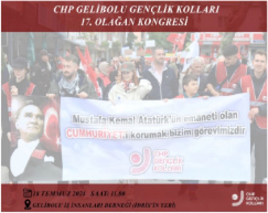 CHP Gelibolu İlçe Gençlik Kolları 18 Ağustos'ta 17. Olağan İlçe Kongresini gerçekleştirecek.