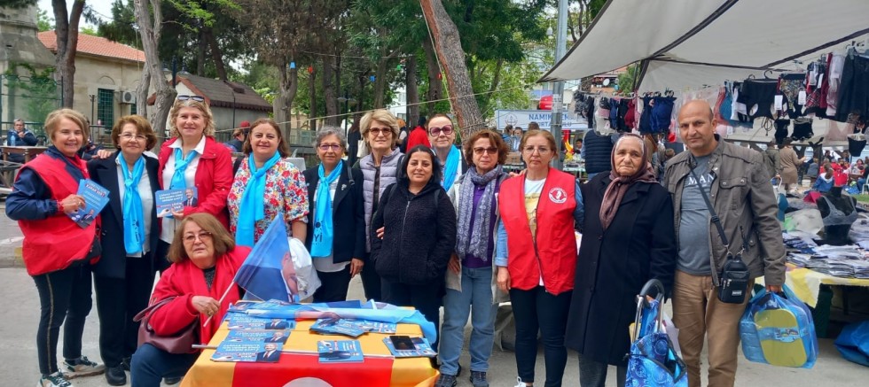 CHP İlçe Kadın Kolu Başkanı Yeter Deligöz ve yönetim kurulu üyeleri Salı Pazarında seçim çalışmalarına devam ettiler.