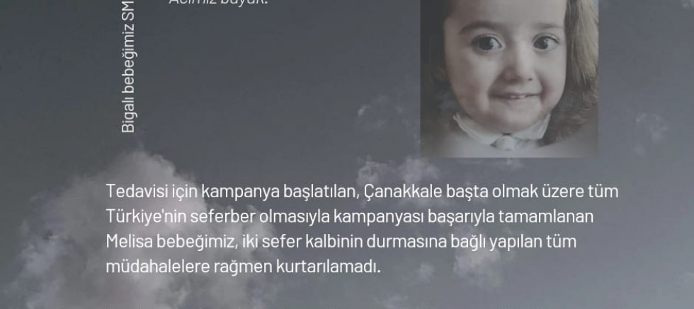 CHP İlçe Başkanı Coşkun, yayımladığı mesajında; “Tedavisi için başta Çanakkale olmak üzere tüm Türkiye'nin seferber olarak kampanyasını tamamlayan Bigalı Melisa bebeğimiz, iki sefer kalbinin durmasına bağlı olarak yapılan tüm müdahalelere rağmen kurtarılamadı.
