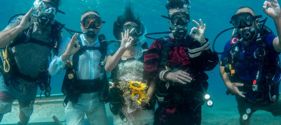 Nikah kıyılırken hem dalgıçlar hem de su altı kameraları hazır bulundu. Renkli görüntülere sahne olan törende çift, dalış sonrası kıyıya çıkarak, misafirlerin önünde de nikah defterine imza atıp, kutlama yaptılar.