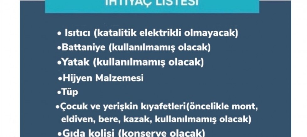 Gelibolu Kaymakamlığı deprem bölgesine yapılacak yardımlara ilişki bilgilendirmede bulunarak şu açıklamayı yaptı; "Kıymetli Hemşehrilerimiz Deprem Bölgesine Ulaştırılacak yardım malzemeleri için İlimizde Afet koordinasyon merkezleri oluşturulmuş, İl Merkezinde 112 Acil Çağrı Merkezinin alt katında, ilçelerde Kaymakamlıklarımız tarafından oluşturulan Afet koordinasyon merkezleri bu amaçla faaliyete geçirilmiştir. Yardım ihtiyaç malzemeleri buralarda toplanıp, AFAD koordinasyonunda ihtiyaç bölgelerine sevki sağlanacaktır. Yapılacak nakdi yardımlar AFAD başkanlığı tarafından yayınlanan Deprem Bağış Hesapları sayfasındaki hesap numaralarına yapılabilecektir. Ayni Yardımların aşağıdaki listeye göre yapılması önem arz etmektedir. Deprem Bölgesine Yapılacak Ayni Yardımlar;