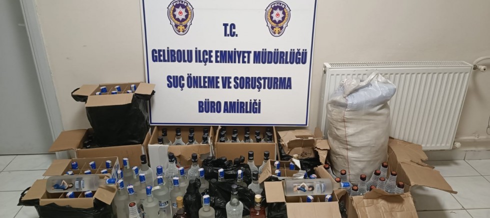 Gelibolu İlçe Emniyet Müdürlüğü Suç Önleme ve Soruşturma Büro Amirliğinin yaptığı baskında çok sayıda sahte alkol bulunurken, 2 kişi de gözaltına alındı.
