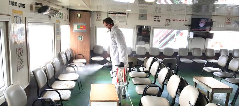 İlçemizde Gelibolu ve Çardak arasında deniz ulaşımı sağlayan GELÇAR, yolcularının ve çalışan personellerin güvenliğini sağlamak için dezenfekte işlemlerini gerçekleştirdi.