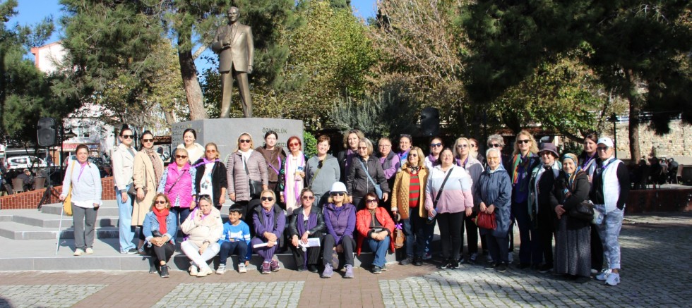 Pazar yerindeki basın açıklamasının ardından İskele Meydanı’ndaki Atatürk Anıtı önünde toplanan kadınlar, şiddete hayır demek için basın açıklaması yaptı.