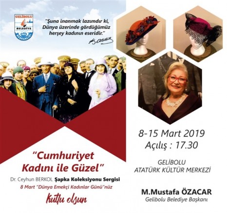Gelibolu Belediyesi kültür etkinlikleri kapsamında, 8 Mart Dünya Kadınlar Günü’ne özel Dr.Ceyhun Berkol tarafından hazırlanan “Cumhuriyet Kadını ile Güzel” isimli şapka koleksiyonu sergisini ilçe halkı ile buluşturuyor.