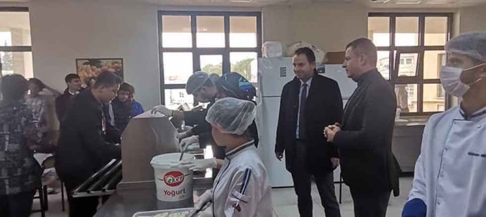 İlçe Milli Eğitim Müdürü Kadir Aydın, bu kapsamda Mehmet Akif Ersoy Mesleki ve Teknik Anadolu Lisesi’nde hazırlanan öğle yemeğinde öğrencilerle buluştu. Yemeklerin hazırlanışı, servis edilişi ve diğer işlemleri yerinde inceleyen İlçe Milli Eğitim Müdürü Aydın, okul yöneticileri, öğretmenleri ve öğrencilerle birlikte öğle yemeği yedi.