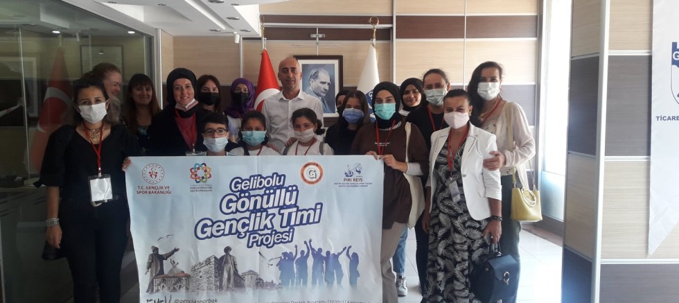 Gençlik ve Spor Bakanlığı Gençlik Projeleri Destek Programı GPDP 2020-1 kapsamında desteklenen Gelibolu Piri Reis Derneği tarafından yürütülen Gelibolu Gönüllü Gençlik Timi Projesi faaliyetleri kapsamında Proje Uygulama Birimi yetkilileri Dernek Başkanı Zerrin Şakar, Gelibolu Anadolu İmam Hatip Lisesi Okul Müdürü Simge Tulun, Proje Sportif Koordinatörleri Buse Engin,Ayşe Reyhan Tekiroğlu, Proje Koordinatörü Gülden Okçu Engin ve gönüllü gençler Gelibolu Ticaret ve Sanayi Odası’nı (TSO) ziyaret etti.