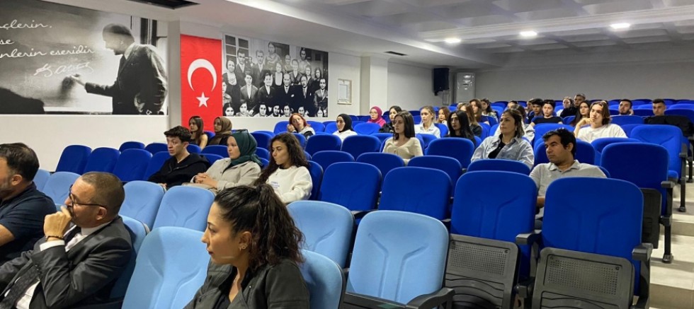 Oryantasyon toplantısında bölüm öğrencilerine okul ve bölümün işleyişi konuları hakkında bilgilendirme yapılarak ve öğrencilerin soruları yanıtlandı.
