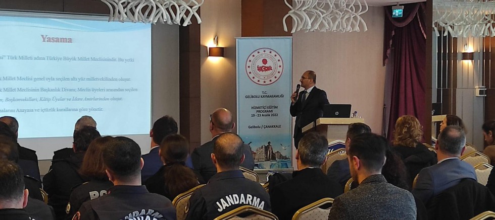 Gelibolu By Hilton Otel'de gerçekleşen eğitimin ilk gününde Kaymakam Bekir Abacı tarafından kamu personeline "Anayasa ve Genel Olarak Devlet Teşkilatı, Dilekçe Hakkının Kullanılmasına Dair Kanun, Bilgi Edinme Kanunu, Kamu Hizmetlerinin Sunumunda Uygulanacak Usul ve Esaslar ve İmza Yetkileri Yönergesi" konularında eğitim verildi.