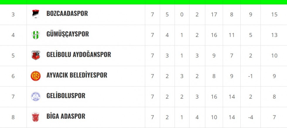 Bir diğer Gelibolu temsilcisi Gelibolu Aydoğanspor ise Bozcaadaspor deplasmanında mücadele etti. Karşılaşmayı 2-1 kaybeden Aydoğanspor, haftayı mağlubiyetle kapatan ikinci takım oldu.