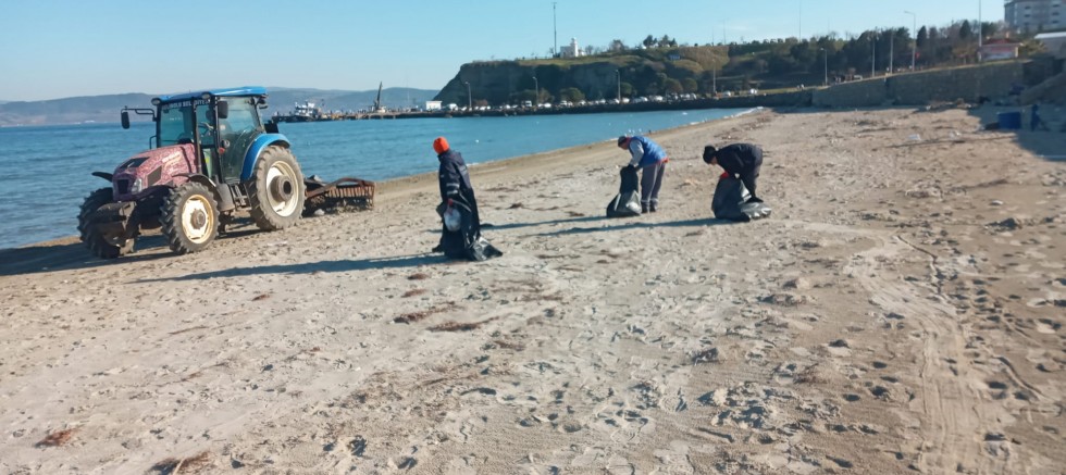 Gelibolu Belediyesi Temizlik İşleri Müdürlüğü, hafta sonu mesaisini Hamzakoy sahilinde mıntıka temizliği yaparak tamamladı.