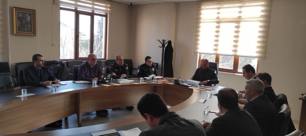 Kaymakam Bekir Abacı başkanlığında kurum amirlerinin katılımıyla ilçemize gelecek depremzede vatandaşların barınma sorunları ve ihtiyaçlarının karşılaması, deprem bölgesine gönderilecek araç destekleri ve ayni yardımların planlanması amacıyla toplantı düzenledi.