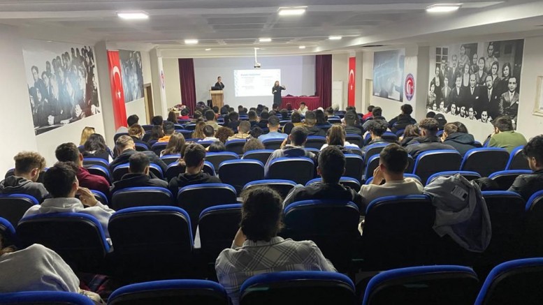 Sunumunu İş ve Meslek Danışmanları Gamze Kurt ve Sibel Şengün’ün yaptığı programda İş Kulübü Faaliyetleri, Mesleki Yönelim Test Bataryası ve Staj Portalı anlatıldı.