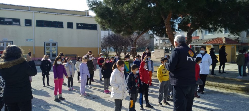 İtfaiye Müdürlüğü personelleri; dün 26 Kasım İlkokulu’ndaki öğrencilere ‘Yangın Güvenliği Temel Eğitimi’ konulu teorik ve pratik eğitim programı düzenledi. İtfaiye Müdürlüğü ekipleri, eğitimde ayrıca itfaiye teçhizatları hakkında bilgi verdi.
