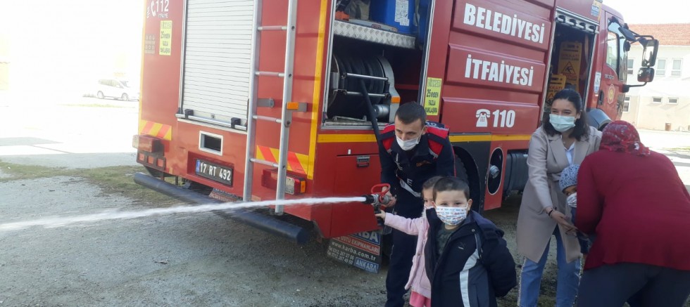 İtfaiye Müdürlüğü personelleri; dün Şehit Öğretmen Aybüke Yalçın Anaokulu öğrencilerine yangın eğitimi ve itfaiye teçhizatları hakkında bilgi verdi.