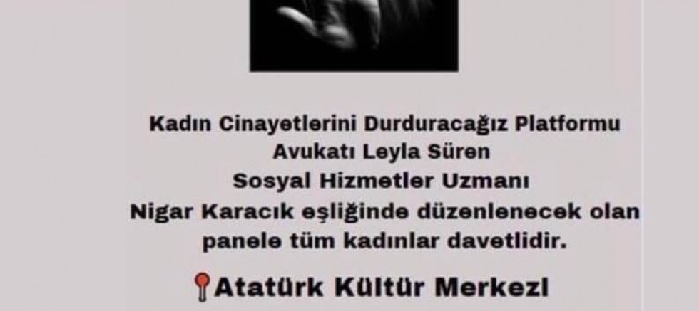 Gelibolu Belediyesi, Gelibolu Sağlık Turizm Kültür ve Sanat Derneği ve Gelibolu Kent Konseyi Kadın Meclisi’nin ortak çalışması ile Kadın Cinayetlerini Durduracağız Platformu Avukatı Leyla Süren ve Sosyal Hizmetler Uzmanı Nigar Karacık tarafından panel düzenlenecek.