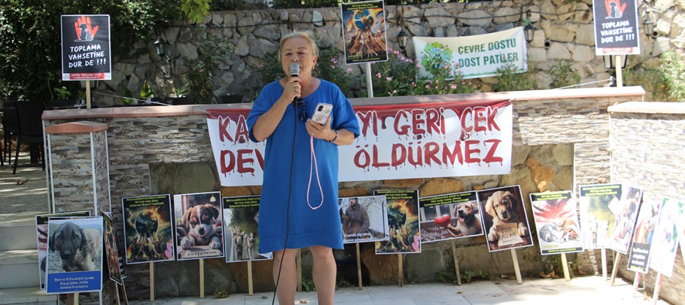 Basın açıklamasını okuyan Dernek Başkanı Yasemin Çat, yasa tasarısının geri çekilmesini belirterek; “Dünyaya örnek olacak şekilde 2004 yılında ana hükmü belediyelerin bakımevi kurup kısırlaştırma yapması olarak çıkartılan Hayvanları Koruma Kanunu'na rağmen, hala daha 1389 belediyenin 1200’ünde halen bakımevi de yok kısırlaştırma yok.
