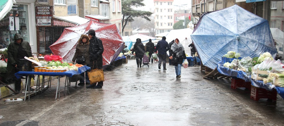 Dün ilçemizde etkili olan kar yağışı nedeniyle pazarcı esnafının birçoğu tezgah açmadı. Salı pazarının giyecek bölümü hiç açılmazken, sebze- meyve bölümünde de bir çok tezgah açılmadı. Keşan ile Lapseki ve köylerinden ilçemize gelerek tezgah açan pazarcı esnafları dün kar yağışı nedeniyle tezgahlarını açmadı.