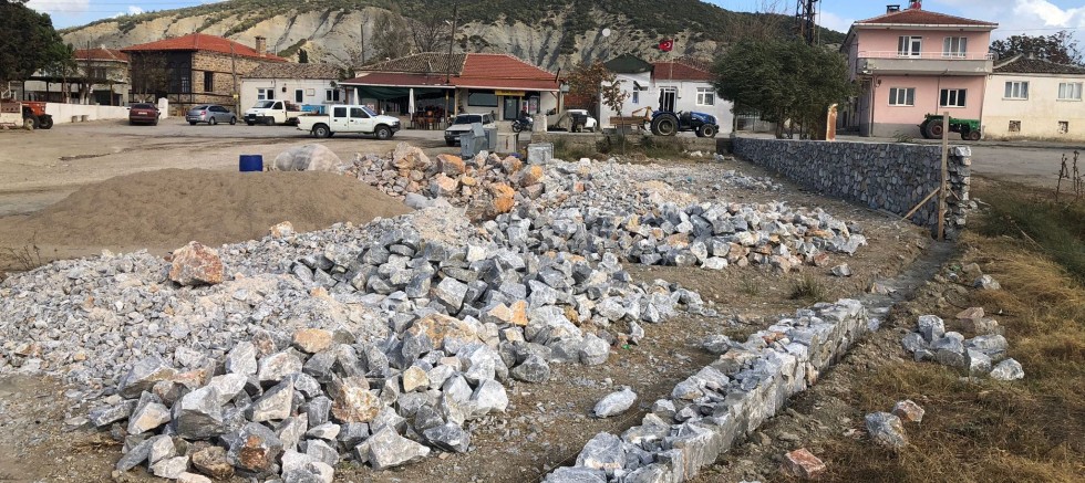 İlçemize bağlı Karainebeyli köyünde meydan düzenlemesine çevre taş duvar yapımı ile başlandı.