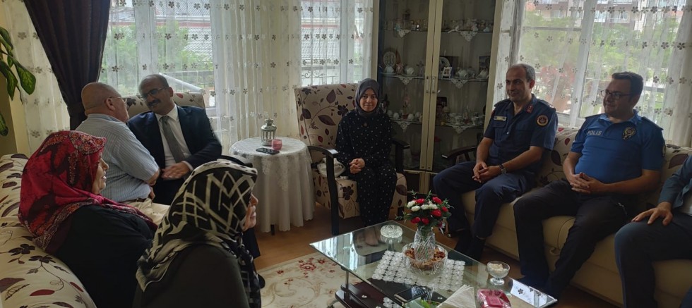 Kaymakam Bekir Abacı ve eşi Fendiye Büşra Abacı, Şehit Haşim Usta, Şehit Cihan Bozkurt ve Gazi Yusuf Dere'nin ailelerini Kurban Bayramı dolayısıyla ziyaret etti.