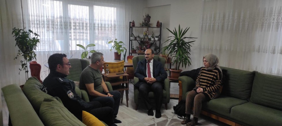 İlçemiz Kaymakamı Bekir Abacı ve eşi Fendiye Büşra Abacı, depremde Malatya'da bulunan annesi, babası ve kardeşini kaybeden Polis Memuru Murat Peköz'e taziye ziyaretinde bulundu.