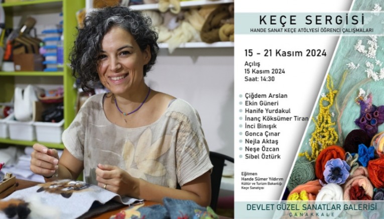 Çanakkale Devlet Güzel Sanatlar Galerisi, Hande Sümer Yıldırım’ın eğitmenliğinde Hande Sanat Keçe Atölyesi öğrencilerinin eserlerinden oluşan özel bir keçe sergisine ev sahipliği yapıyor. 15-21 Kasım 2024 tarihleri arasında ziyaret edilebilecek olan sergi, 15 Kasım günü saat 14:30’da açılış töreni ile sanatseverlerle buluşacak.