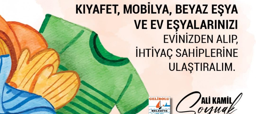 Kullanılmayan eşyaları ihtiyaç sahiplerine ulaştırmak için çalışmalara devam edildiğini belirten Gelibolu Belediyesi, yaptığı açıklamada; “Kıymetli hemşehrilerimiz; kullanmadığınız kıyafet, mobilya, beyaz eşya ve ev eşyalarınızı evinizden alıp, ihtiyaç sahiplerine ulaştırıyoruz.