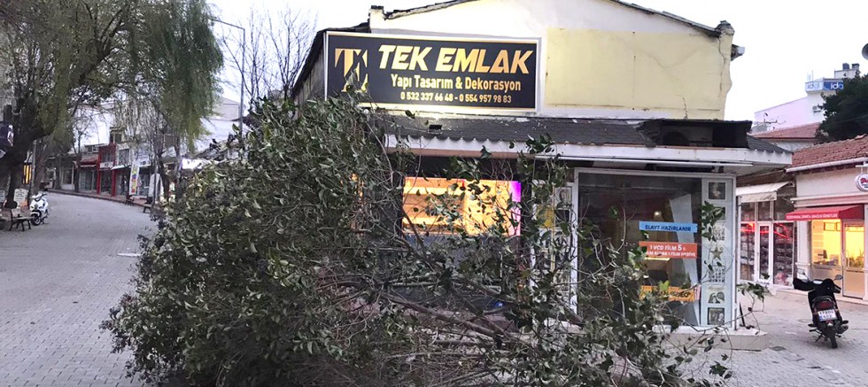 Fırtına sebebiyle ilçede ayrıca 26 Kasım Caddesi’nde bir reklam panosunun da zarar gördüğünü belirten yetkililer, vatandaşları dikkatli olmaları konusunda uyardı.