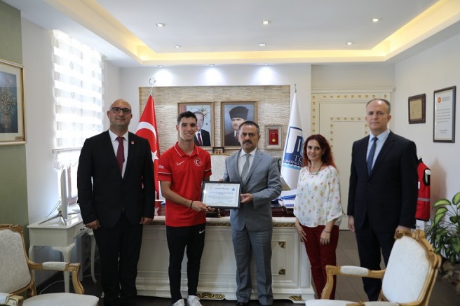 Vali İlhami Aktaş, ziyaretten duyduğu memnuniyeti dile getirerek, Milli Okçu Ulaş Berkim Tümer’e başarı belgesi verdi.